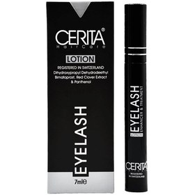 CERITA _ LOTION EYE LASH _ افزایش استحکام و ضخامت مژه _ افزایش رویش و رشد مژه _ دارای خاصیت آنتی اکسیدانی برای مهار رادیکال های آزاد _ افزایش آب رسانی با کاهش میزان تبخیر آب _ تنظیم رنگدانه سازی _ تقویت بستر مژه با کمک به افزایش میزان تولید پروتئین در ریشه _ حاوی بیماتوپراست، شبدر قرمز، نیاسین آمید، آلوئه ورا، ویتامین های B5 و B7
